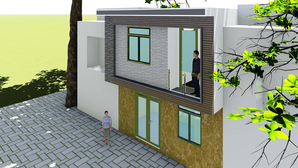Mẫu nhà này có diện tích không quá lớn nhưng được thiết kế rất tỉ mỉ nên có thể đáp ứng tốt nhu cầu cuộc sống của gia chủ. Mặc dù có thiết kế khá đơn giản nhưng với kiểu mái lệch màu xanh độc đáo đã giúp ngôi nhà trở nên khác biệt và nổi bật hơn.