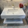 BÀN ĐÁ KẾT HỢP TỦ DƯỚI BDNK.221 – Chất liệu đá nhân tạo ghi xám chống xước Kiểu dáng sang trọng, hiện đại, phù hợp với mọi kiến trúc và không gian nhà tắm.