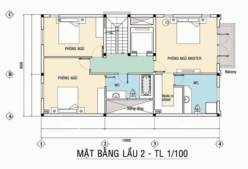 Mặt bằng tầng 2: 2 phòng ngủ