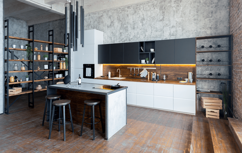 Thiết kế nội thất phòng bếp với tông màu sáng giúp làm nổi bật các vật dụng tối khác. Từ gạch đến tường hay đồ dùng nhà bếp, tạo nên nghệ thuật của sự tương phản, giúp ngôi nhà được mở rộng hơn.