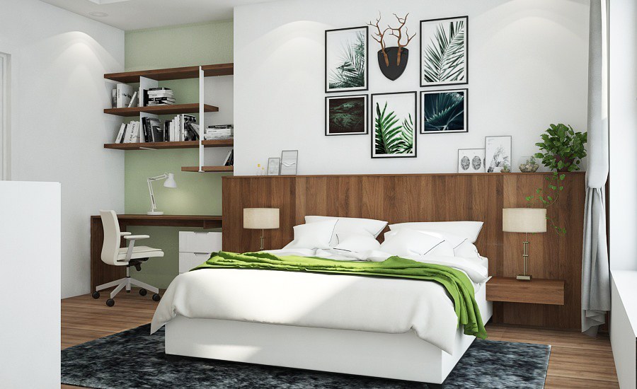 Với phòng ngủ dành cho ba mẹ có thể sử dụng các gam màu trắng trung tính, kết hợp những vật dụng có màu sắc trầm để tạo cảm giác ấm ấp, thư thái. Phòng được thiết kế với nhiều ô cửa kính giúp đón ánh sáng, mang đến một cảm giác tươi mát và tràn đầy năng lượng.