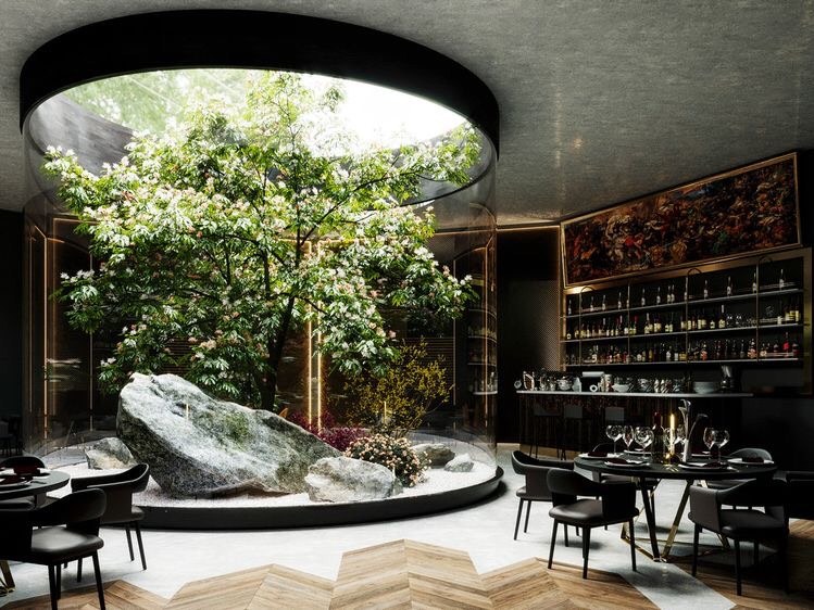 + Tận dụng góc cổ thụ lớn trong quán: chọn kiểu thiết kế dãy ghế bao bọc thân cây, tận dụng bóng mát, tạo cảnh view độc đáo và nổi bật cho quán cà phê sân vườn.