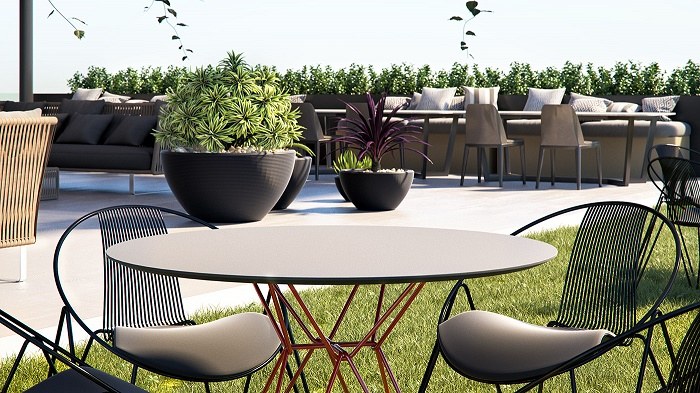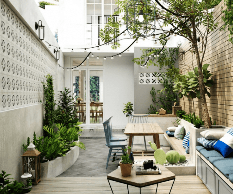 + Trồng cây xanh thành hàng rào: để không gian quán cafe thoáng mát và giới hạn phạm vi thì thiết kế hàng rào xanh cho không gian là ý tưởng không tồi. Những loại cây thích hợp để làm hàng rào xanh có thể kể đến như là: cây tre, trúc cảnh, xương rồng, hoặc các loại có tán rộng,…